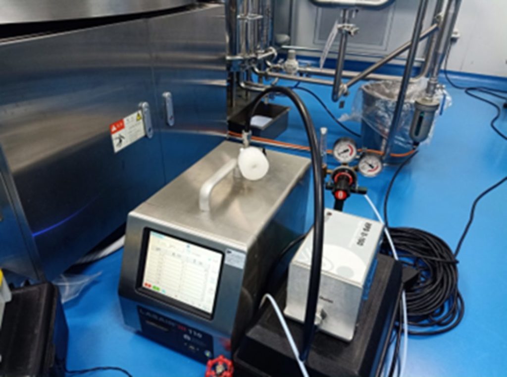 การใช้เครื่องนับอนุภาค ควรเลือกจุดที่เหมาะสมของระบบอัดอากาศในไลน์ผลิต และต้องติดตั้งเครื่องลดแรงดันก่อนเข้าไปยังเครื่องนับอนุภาค (เพื่อลดแรงดัน และ ป้องกันความเสียหายกับตัวเครื่องนับอนุภาค) เมื่อติดตั้งเสร็จแล้ว เครื่องนับอนุภาคจะทำการนับด้วยระบบเลเซอร์วัดแบบเรียลไทม์จากการไหลผ่านของลมอัด  เพื่อนับจำนวนฝุ่นและแยกค่าขนาดของฝุ่น สามารถคำนวณ และรายงานผลการตรวจวัดคุณภาพลมอัดในไลน์ผลิตได้ตาม Class 1